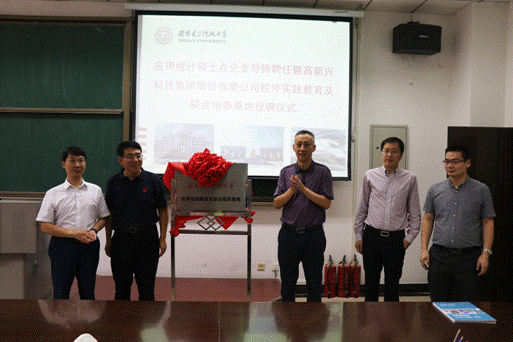 王泉与刘三阳为受聘企业指导教师颁发聘书,双方领导共同为实践教育基地揭牌。