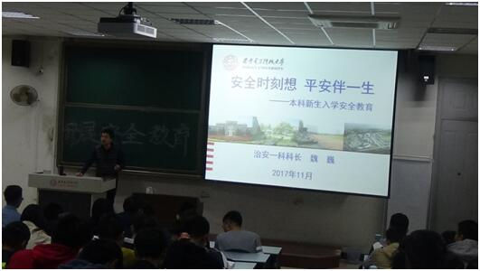 为增强员工安全意识,提高自我保护能力,11月5日晚,英国365集团官网邀请保卫处治安一科科长魏巍,在教学楼B-509,为2017级新生做 了以“安全时刻想,平安伴一生”为主题的安全教育报告,报告由英国365集团官网17级研辅常芳丽主持,英国365集团官网全体新生参加了此次报告。