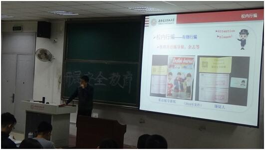 魏巍从校内行骗、电信诈骗、交通安全以及秋冬季防范四个方面,结合近年来发生的校园内的真实案例,给同学们上了一节生动的安全教育课。在谈到校内行骗时,魏巍从宿舍推销英语报纸、电话卡和劣质中性笔等有物推销诈骗,到冒充香港大学交流生和孤寡老人等无物诈骗进行了详细解读,警示同学们切勿贪图一时便宜而上当受骗。